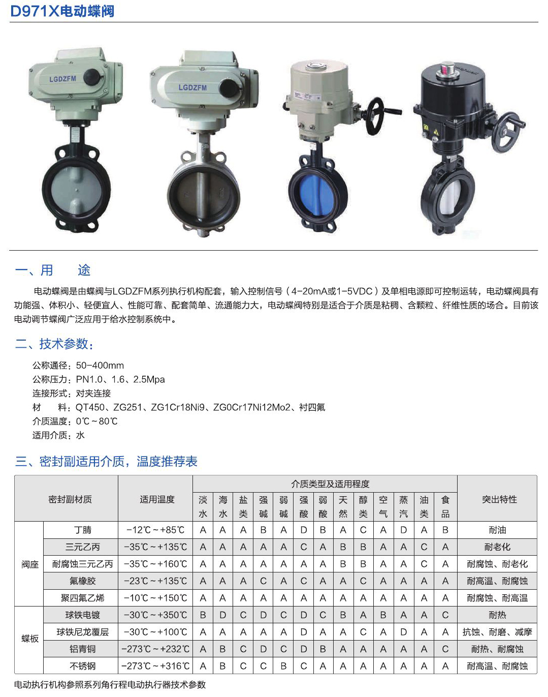 - 電動蝶閥是由蝶閥與LGDZFM系統(tǒng)執(zhí)行機構配套,輸入控制信號(4-20mA或1-5VDC)及單相電源即可控制運轉,電動蝶閥具有功能強、體積小、輕便宜人、性能可靠邊、配套簡單、流通通力大,電動蝶閥特別是適合于介質是粘稠、含顆粒、纖維性質的場合。