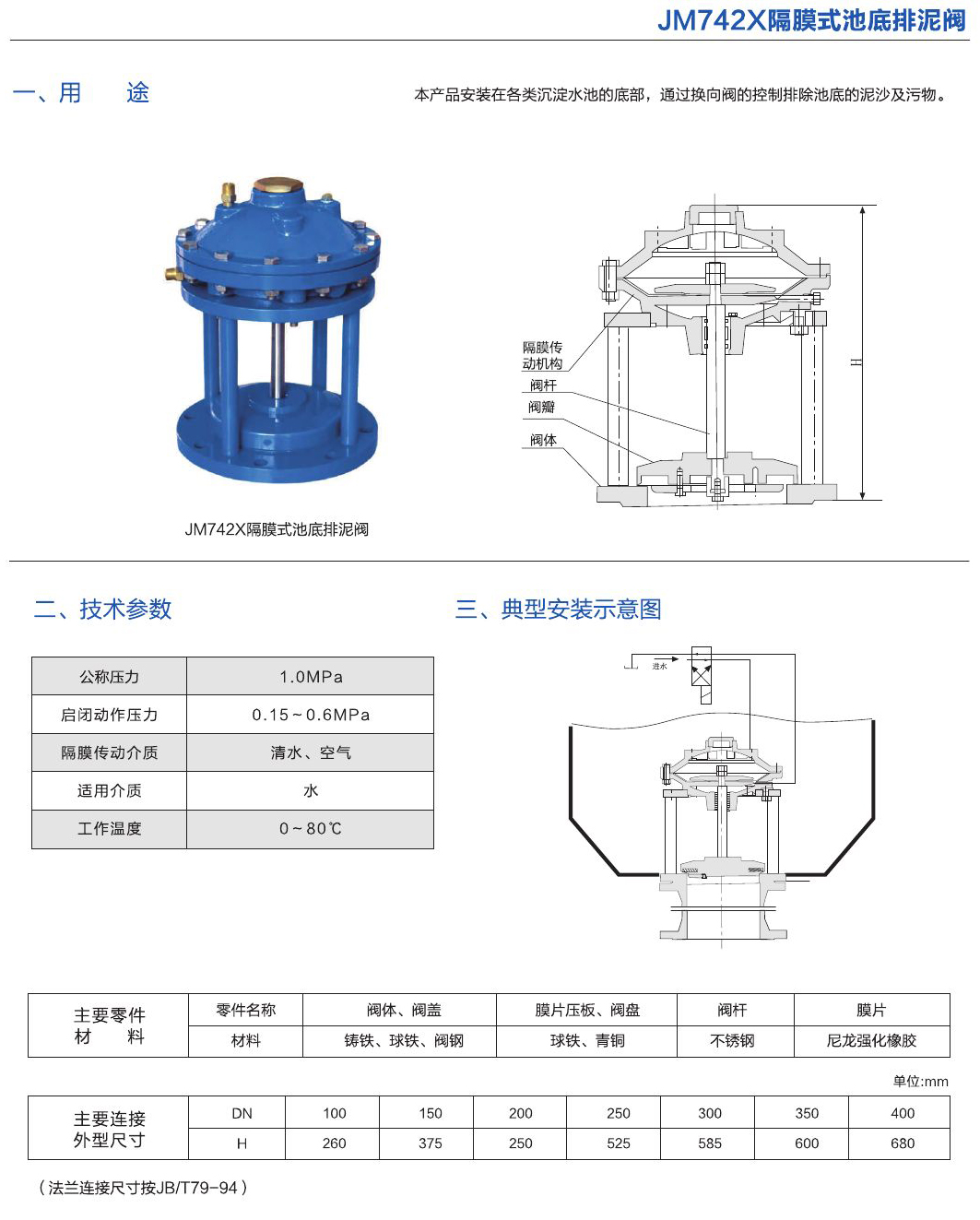 - 隔膜式池底排泥閥 JM742X