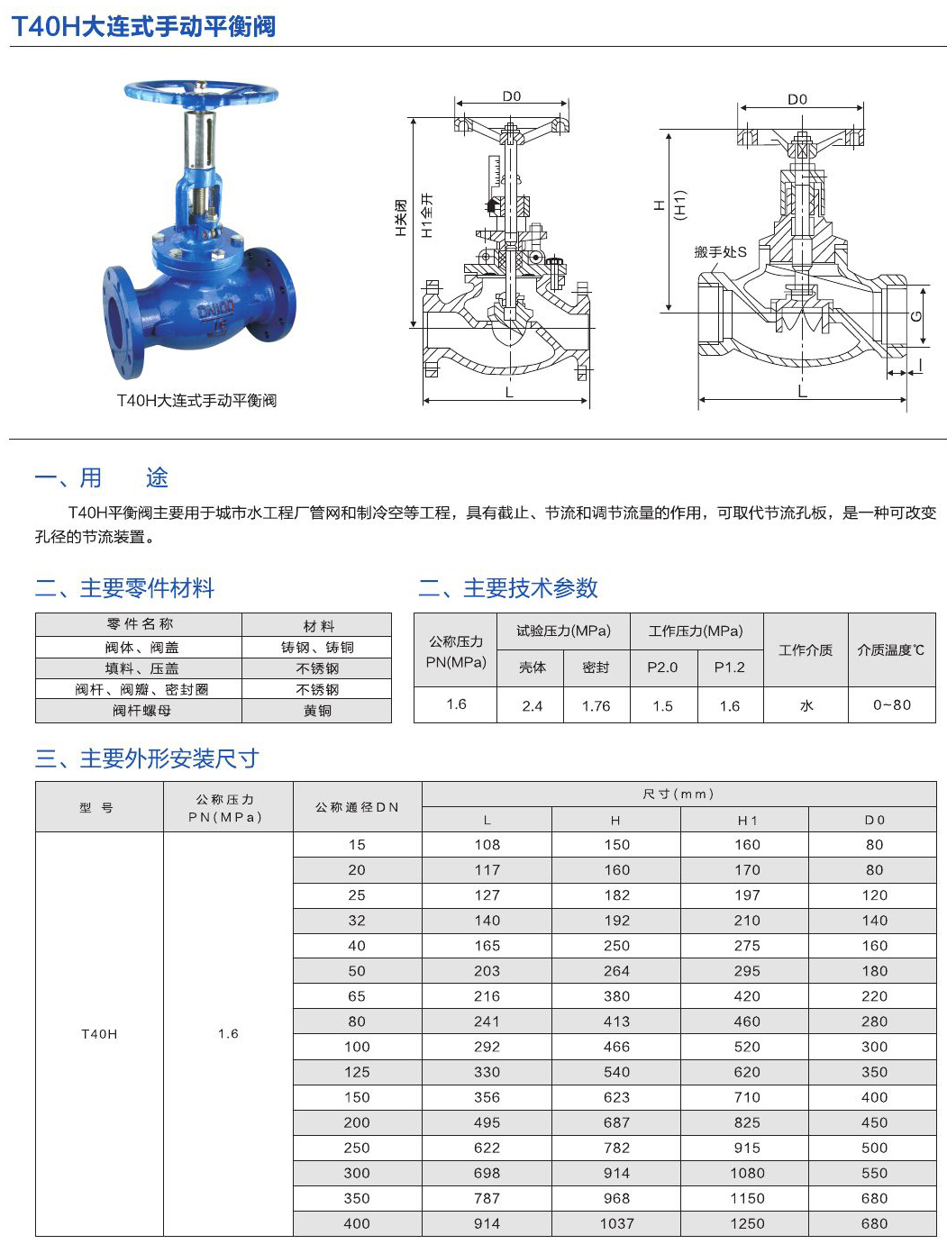 - T40H平衡閥主要用于城市水工程廠管網(wǎng)和制冷空等工程,具有截止、節(jié)流和調(diào)節(jié)流量的作用,可取代節(jié)流孔板,是一種可改變孔徑的節(jié)流裝置。