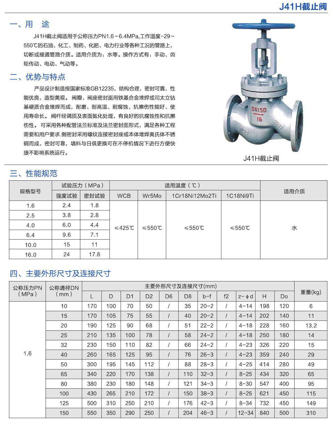 - J41H截止閥適用于公稱壓力PN1.6-6.4MPa,工作溫度-29~550的石油、化工、制藥、化肥、電力行業(yè)等各種工況的管路上,切斷或接通管路介質(zhì)。